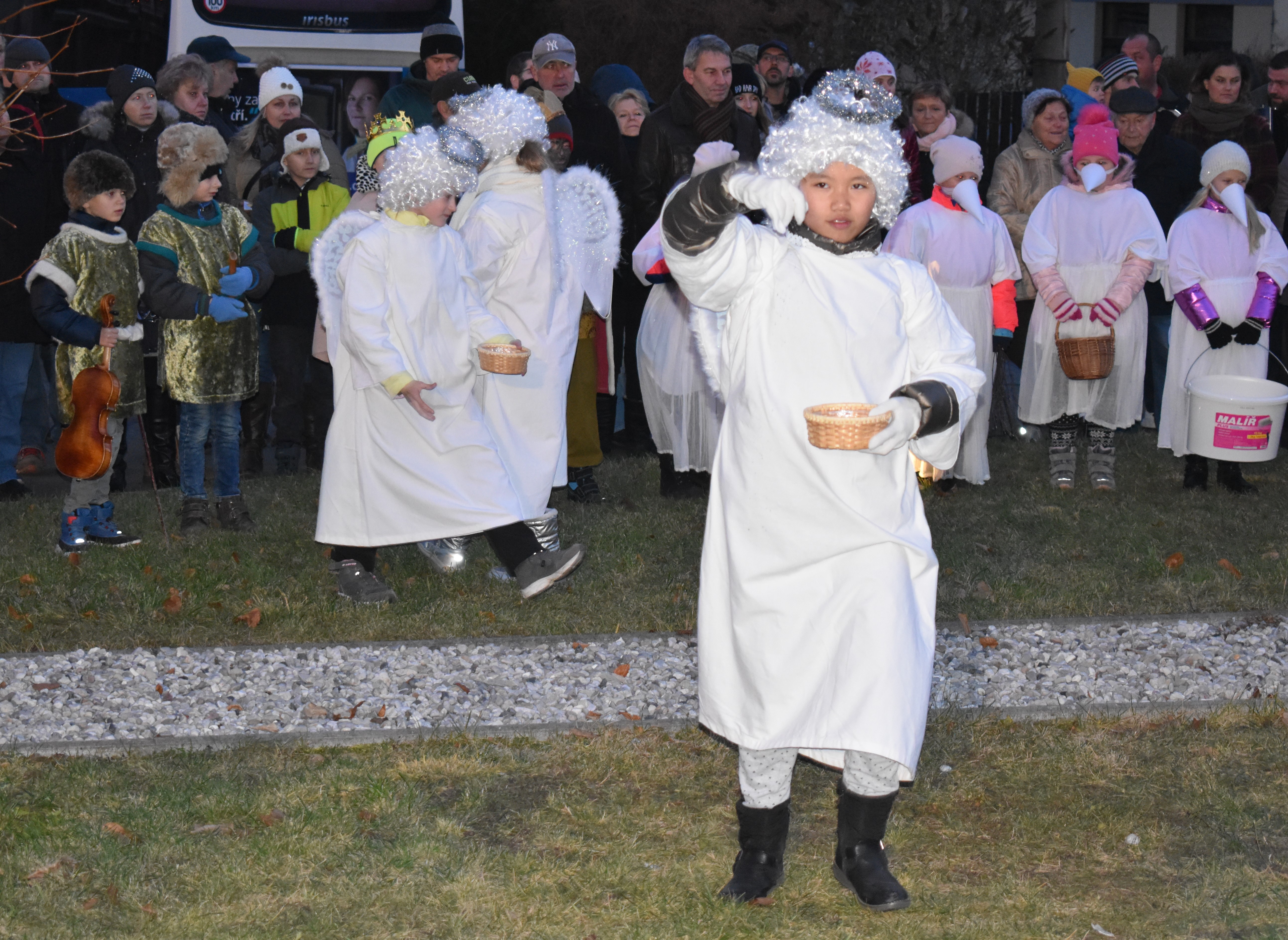 Čas rychle uběhl a znovu tu máme překrásný čas adventu. Je sobota 7. prosince a čeká nás tradiční rozsvěcování vánočního stromku na návsi. Z rozhlasu se linou melodie vánočních koled a cítíme tu vůni svařeného vína a opečených klobás. Můžeme tu vidět stánky s krásnými vánočními dekoracemi, zakoupit si můžeme také jmelí a škvarkové placky nebo perník. Kolem půl čtvrté začíná hrát kapela pana Valty. Na náves přicházejí další lidé a vidíme tu i malé vločky – děti z MŠ, připravené na své vystoupení. Ze všech stran tu na nás dýchá pravá vánoční atmosféra. Pomalu se stmívá, je 16 hodin a slova se ujímá pan starosta Pavel Sládek. Přivítá všechny přítomné a následuje tradiční troubení vánočních koled a rozsvícení stromku. Poté přicházejí na scénu malé děti z MŠ se svým vystoupením „Mrazíci“. Jsou převlečené za vločky a krásně zpívají, cvičí a tančí na své písničky. Jsou opravdu šikovné a sklízí zasloužený potlesk. Program pokračuje vystoupením žáků ZŠ. Přicházejí diváky seznámit s různými postavami adventního kalendáře. U jesliček vidíme Marii s Josefem a Ježíškem a k nim přilétají na svých křídlech překrásní andělé. Přijíždí sem Martin na svém bílém koni. Můžeme tu vidět také muzikanty, děti, Barborky a Ambrože. Nechybí tu ani Mikuláš s krásným andělem a malými čertíky, pantáta se svou rodinou, Lucie a Tři králové. Potom začíná vlastní „Putování do Betléma“. Během této cesty se postupně seznamujeme s jednotlivými postavami adventního kalendáře. Děti zpívají různé koledy a písně a vše doprovázejí hranými scénkami. Na závěr rozsvěcují své svíčky a zpívají koledu „Čas radosti, veselosti“. Jejich zpěv je krásný a nedají se vyvést z míry, když nás zradí technika a přestane hrát rádio. Společně dozpívají koledu za pomoci svých učitelek i přihlížejících lidí. Právě v tomto okamžiku na nás dýchá překrásná vánoční atmosféra a děti jsou odměněny velkým potleskem od přihlížejících diváků. Vystoupení pomalu končí a malí herci odcházejí s úsměvem ze scény.